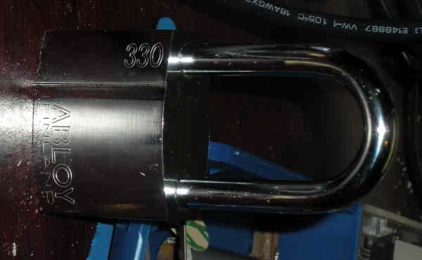 This is the 2 inch shackle for this lock with the ball bearings in the locking grooves. The shackle is made of borated steel and is eched with "BORON 50"